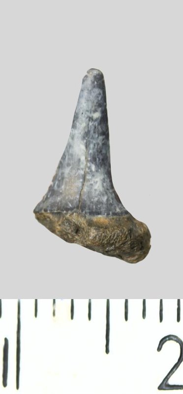 Зуб. Акула. Striatolamia striata (Winkler, 1874). Классификация: Хордовые Chordata, Позвоночные Vertebrata, Хрящевые рыбы Chondrichthyes, Пластиножаберные Elasmobranchii
