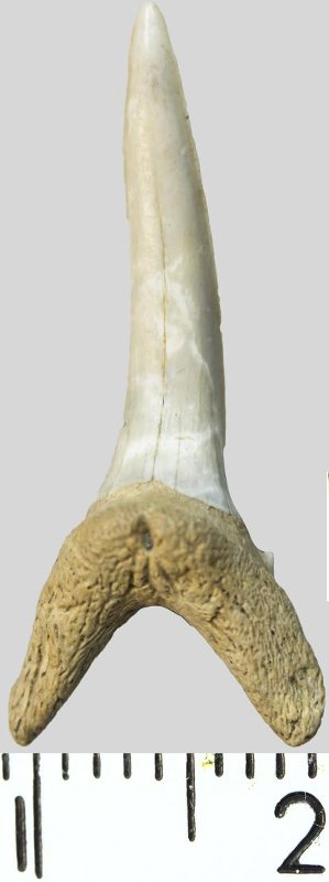 Зуб. Акула. Striatolamia striata (Winkler, 1874). Классификация: Хордовые Chordata, Позвоночные Vertebrata, Хрящевые рыбы Chondrichthyes, Пластиножаберные Elasmobranchii