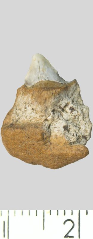 Зуб (фрагмент). Акула. Otodus minor mediavus (Leriche, 1942). Классификация: Хордовые Chordata, Позвоночные Vertebrata, Хрящевые рыбы Chondrichthyes, Пластиножаберные Elasmobranchii