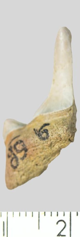 Зуб (фрагмент). Акула. Otodus minor mediavus (Leriche, 1942). Классификация: Хордовые Chordata, Позвоночные Vertebrata, Хрящевые рыбы Chondrichthyes, Пластиножаберные Elasmobranchii