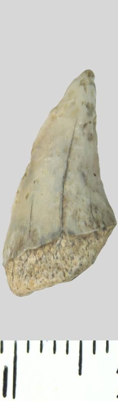 Зуб (фрагмент). Акула. Otodus minor mediavus (Leriche, 1942). Классификация: Хордовые Chordata, Позвоночные Vertebrata, Хрящевые рыбы Chondrichthyes, Пластиножаберные Elasmobranchii