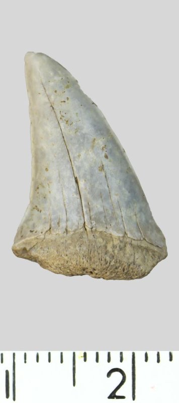 Зуб (фрагмент). Акула. Otodus minor mediavus (Leriche, 1942). Классификация: Хордовые Chordata, Позвоночные Vertebrata, Хрящевые рыбы Chondrichthyes, Пластиножаберные Elasmobranchii
