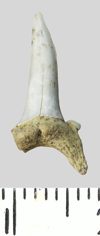 Зуб. Акула. Striatolamia striata (Winkler, 1874). Классификация: Хордовые Chordata, Позвоночные Vertebrata, Хрящевые рыбы Chondrichthyes, Пластиножаберные Elasmobranchii