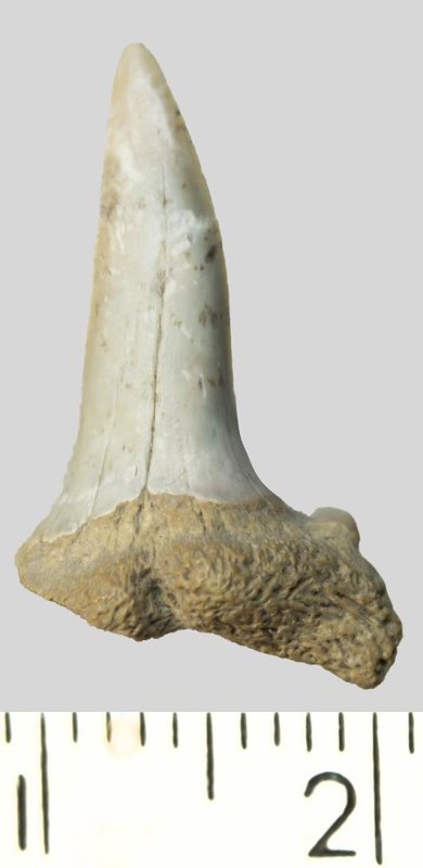Зуб. Акула. Striatolamia striata (Winkler, 1874). Классификация: Хордовые Chordata, Позвоночные Vertebrata, Хрящевые рыбы Chondrichthyes, Пластиножаберные Elasmobranchii