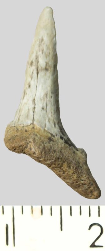 Зуб. Акула. Striatolamia striata (Winkler, 1874). Классификация: Хордовые Chordata, Позвоночные Vertebrata, Хрящевые рыбы Chondrichthyes, Пластиножаберные Elasmobranchii