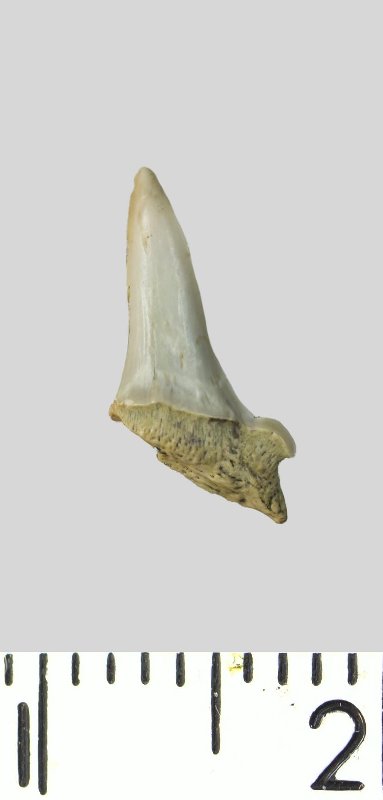 Зуб. Акула. Striatolamia striata (Winkler, 1874). Классификация: Хордовые Chordata, Позвоночные Vertebrata, Хрящевые рыбы Chondrichthyes, Пластиножаберные Elasmobranchii