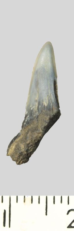 Зуб. Акула. Striatolamia striata (Winkler, 1874). Классификация: Хордовые Chordata, Позвоночные Vertebrata, Хрящевые рыбы Chondrichthyes, Пластиножаберные Elasmobranchii