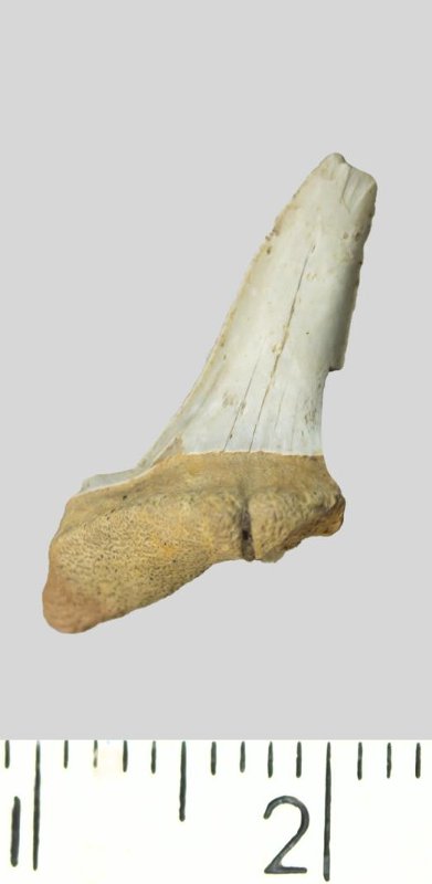 Зуб. Акула. Striatolamia striata (Winkler, 1874). Классификация: Хордовые Chordata, Позвоночные Vertebrata, Хрящевые рыбы Chondrichthyes, Пластиножаберные Elasmobranchii