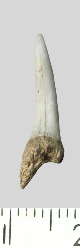 Зуб. Акула. Striatolamia striata (Winkler, 1874). Классификация: Хордовые Chordata, Позвоночные Vertebrata, Хрящевые рыбы Chondrichthyes, Пластиножаберные Elasmobranchii