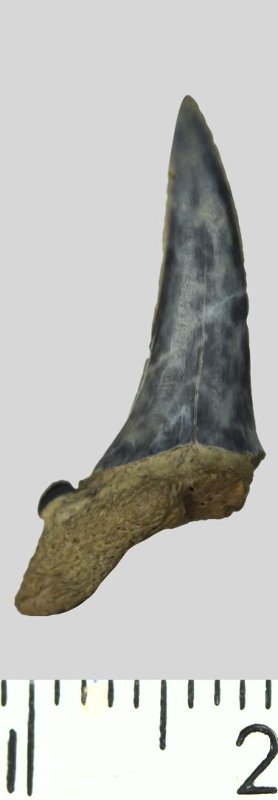 Зуб. Акула. Striatolamia striata (Winkler, 1874). Классификация: Хордовые Chordata, Позвоночные Vertebrata, Хрящевые рыбы Chondrichthyes, Пластиножаберные Elasmobranchii