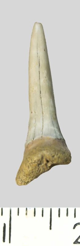 Зуб. Акула. Striatolamia striata (Winkler, 1874). Классификация: Хордовые Chordata, Позвоночные Vertebrata, Хрящевые рыбы Chondrichthyes, Пластиножаберные Elasmobranchii