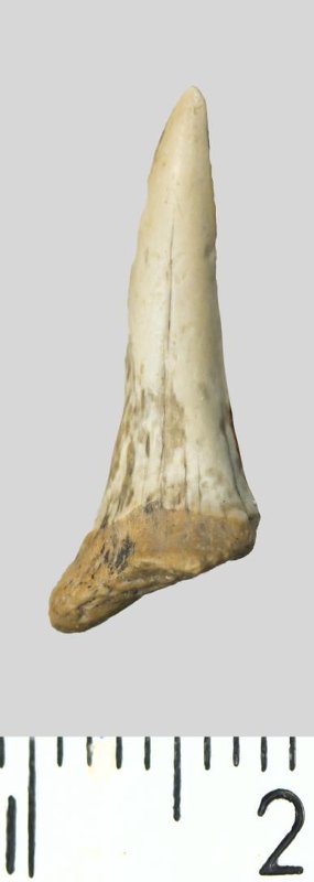 Зуб. Акула. Striatolamia striata (Winkler, 1874). Классификация: Хордовые Chordata, Позвоночные Vertebrata, Хрящевые рыбы Chondrichthyes, Пластиножаберные Elasmobranchii