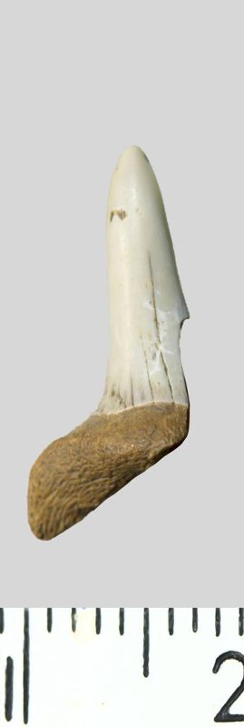 Зуб. Акула. Striatolamia striata (Winkler, 1874). Классификация: Хордовые Chordata, Позвоночные Vertebrata, Хрящевые рыбы Chondrichthyes, Пластиножаберные Elasmobranchii