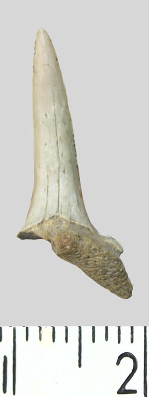Зуб. Акула. Striatolamia striata (Winkler, 1874). Классификация: Хордовые Chordata, Позвоночные Vertebrata, Хрящевые рыбы Chondrichthyes, Пластиножаберные Elasmobranchii