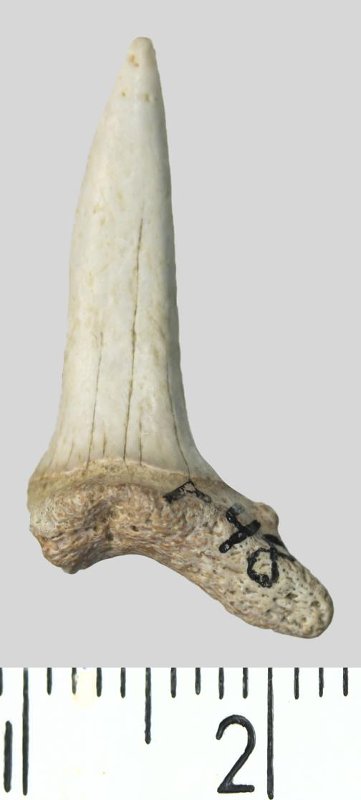 Зуб. Акула. Striatolamia striata (Winkler, 1874). Классификация: Хордовые Chordata, Позвоночные Vertebrata, Хрящевые рыбы Chondrichthyes, Пластиножаберные Elasmobranchii