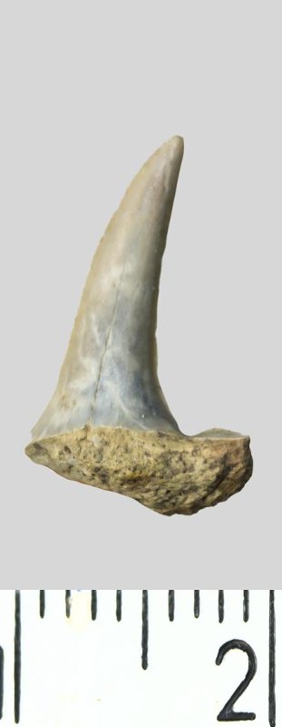 Зуб. Акула. Striatolamia striata (Winkler, 1874). Классификация: Хордовые Chordata, Позвоночные Vertebrata, Хрящевые рыбы Chondrichthyes, Пластиножаберные Elasmobranchii