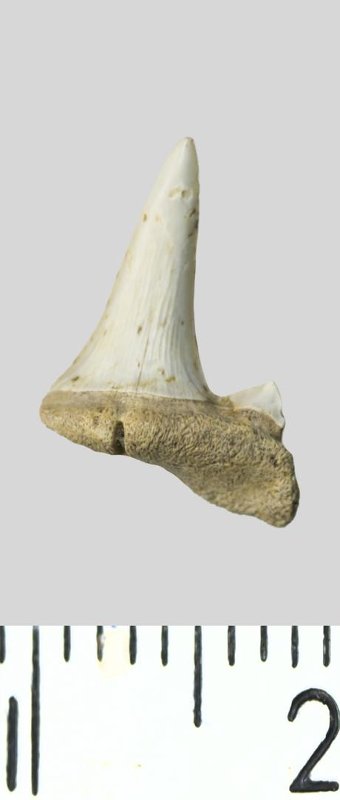 Зуб. Акула. Striatolamia striata (Winkler, 1874). Классификация: Хордовые Chordata, Позвоночные Vertebrata, Хрящевые рыбы Chondrichthyes, Пластиножаберные Elasmobranchii