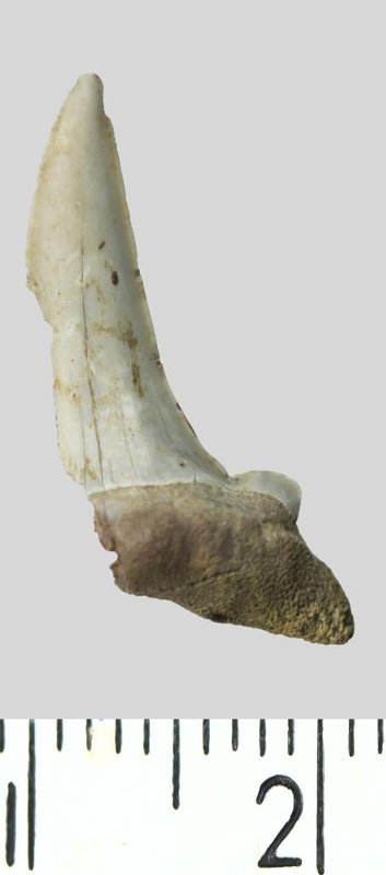 Зуб. Акула. Striatolamia striata (Winkler, 1874). Классификация: Хордовые Chordata, Позвоночные Vertebrata, Хрящевые рыбы Chondrichthyes, Пластиножаберные Elasmobranchii