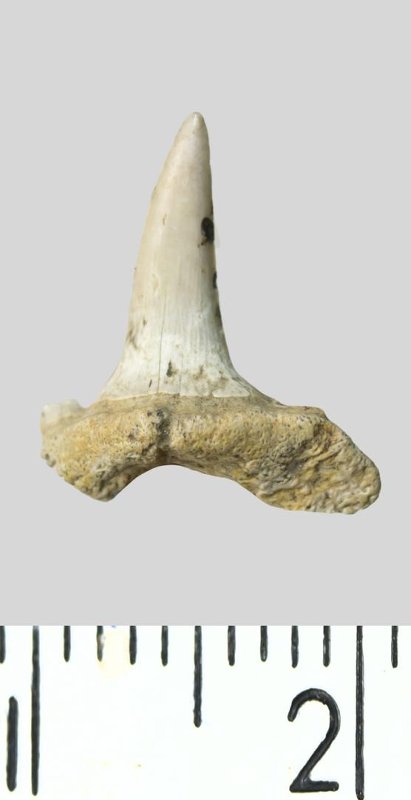 Зуб. Акула. Striatolamia striata (Winkler, 1874). Классификация: Хордовые Chordata, Позвоночные Vertebrata, Хрящевые рыбы Chondrichthyes, Пластиножаберные Elasmobranchii