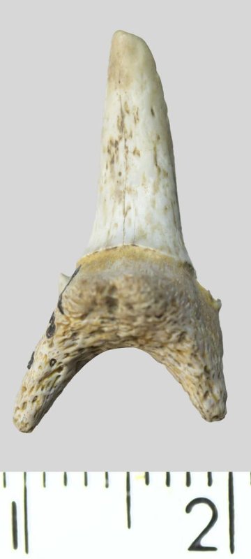 Зуб. Акула. Palaeohypotodus rutoti (Winkler, 1874). Классификация: Хордовые Chordata, Позвоночные Vertebrata, Хрящевые рыбы Chondrichthyes, Пластиножаберные Elasmobranchii