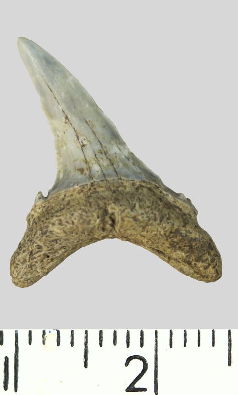 Зуб. Акула. Palaeohypotodus rutoti (Winkler, 1874). Классификация: Хордовые Chordata, Позвоночные Vertebrata, Хрящевые рыбы Chondrichthyes, Пластиножаберные Elasmobranchii