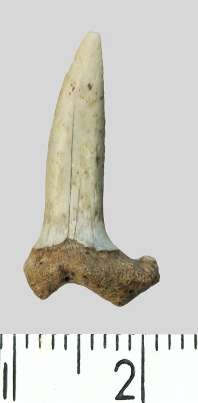 Зуб. Акула. Striatolamia striata (Winkler, 1874). Классификация: Хордовые Chordata, Позвоночные Vertebrata, Хрящевые рыбы Chondrichthyes, Пластиножаберные Elasmobranchii