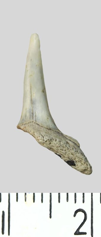 Зуб. Акула. Striatolamia striata (Winkler, 1874). Классификация: Хордовые Chordata, Позвоночные Vertebrata, Хрящевые рыбы Chondrichthyes, Пластиножаберные Elasmobranchii