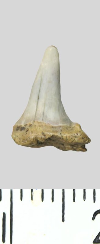 Зуб. Акула. Striatolamia striata (Winkler, 1874). Классификация: Хордовые Chordata, Позвоночные Vertebrata, Хрящевые рыбы Chondrichthyes, Пластиножаберные Elasmobranchii