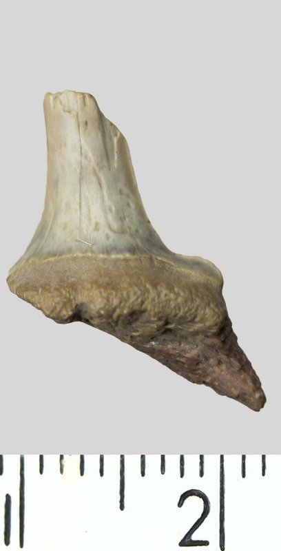 Зуб. Акула. Striatolamia striata (Winkler, 1874). Классификация: Хордовые Chordata, Позвоночные Vertebrata, Хрящевые рыбы Chondrichthyes, Пластиножаберные Elasmobranchii