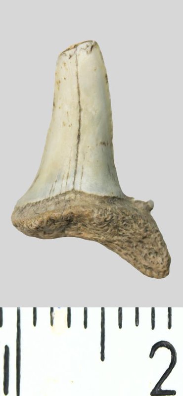 Зуб. Акула. Striatolamia striata (Winkler, 1874). Классификация: Хордовые Chordata, Позвоночные Vertebrata, Хрящевые рыбы Chondrichthyes, Пластиножаберные Elasmobranchii