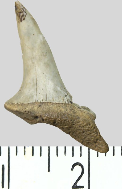 Зуб. Акула. Striatolamia striata (Winkler, 1874). Классификация: Хордовые Chordata, Позвоночные Vertebrata, Хрящевые рыбы Chondrichthyes, Пластиножаберные Elasmobranchii