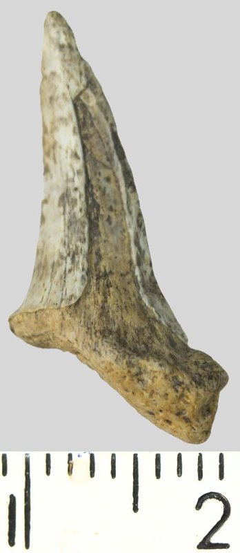 Зуб. Акула. Striatolamia striata (Winkler, 1874). Классификация: Хордовые Chordata, Позвоночные Vertebrata, Хрящевые рыбы Chondrichthyes, Пластиножаберные Elasmobranchii