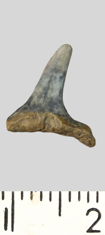 Зуб. Акула. Striatolamia striata (Winkler, 1874). Классификация: Хордовые Chordata, Позвоночные Vertebrata, Хрящевые рыбы Chondrichthyes, Пластиножаберные Elasmobranchii
