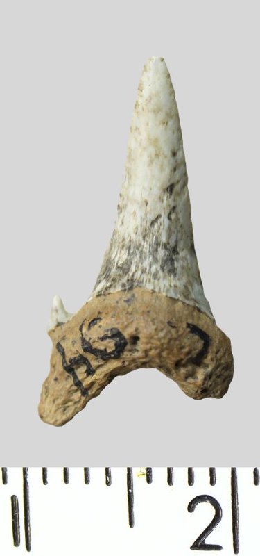 Зуб. Акула. Palaeohypotodus rutoti (Winkler, 1874). Классификация: Хордовые Chordata, Позвоночные Vertebrata, Хрящевые рыбы Chondrichthyes, Пластиножаберные Elasmobranchii