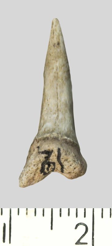 Зуб. Акула. Palaeohypotodus rutoti (Winkler, 1874). Классификация: Хордовые Chordata, Позвоночные Vertebrata, Хрящевые рыбы Chondrichthyes, Пластиножаберные Elasmobranchii