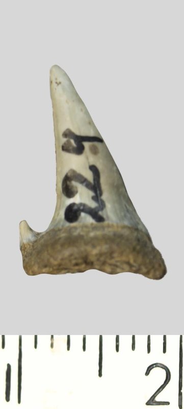 Зуб. Акула. Palaeohypotodus rutoti (Winkler, 1874). Классификация: Хордовые Chordata, Позвоночные Vertebrata, Хрящевые рыбы Chondrichthyes, Пластиножаберные Elasmobranchii