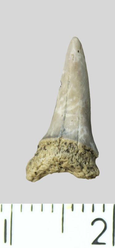 Зуб. Акула. Palaeohypotodus rutoti (Winkler, 1874). Классификация: Хордовые Chordata, Позвоночные Vertebrata, Хрящевые рыбы Chondrichthyes, Пластиножаберные Elasmobranchii
