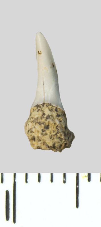 Зуб. Акула. Palaeohypotodus rutoti (Winkler, 1874). Классификация: Хордовые Chordata, Позвоночные Vertebrata, Хрящевые рыбы Chondrichthyes, Пластиножаберные Elasmobranchii
