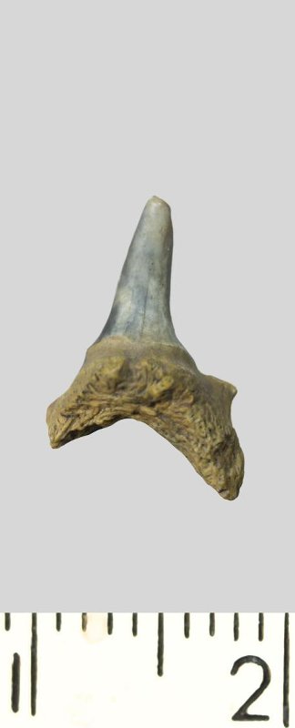Зуб. Акула. Palaeohypotodus rutoti (Winkler, 1874). Классификация: Хордовые Chordata, Позвоночные Vertebrata, Хрящевые рыбы Chondrichthyes, Пластиножаберные Elasmobranchii