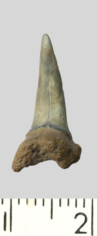 Зуб. Акула. Palaeohypotodus rutoti (Winkler, 1874). Классификация: Хордовые Chordata, Позвоночные Vertebrata, Хрящевые рыбы Chondrichthyes, Пластиножаберные Elasmobranchii