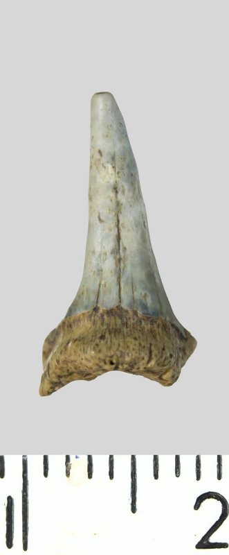 Зуб. Акула. Palaeohypotodus rutoti (Winkler, 1874). Классификация: Хордовые Chordata, Позвоночные Vertebrata, Хрящевые рыбы Chondrichthyes, Пластиножаберные Elasmobranchii
