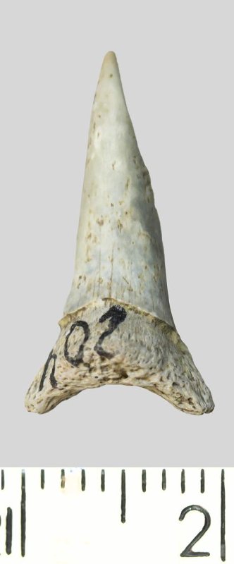 Зуб. Акула. Palaeohypotodus rutoti (Winkler, 1874). Классификация: Хордовые Chordata, Позвоночные Vertebrata, Хрящевые рыбы Chondrichthyes, Пластиножаберные Elasmobranchii