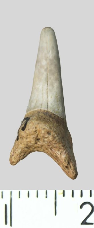 Зуб. Акула. Palaeohypotodus rutoti (Winkler, 1874). Классификация: Хордовые Chordata, Позвоночные Vertebrata, Хрящевые рыбы Chondrichthyes, Пластиножаберные Elasmobranchii