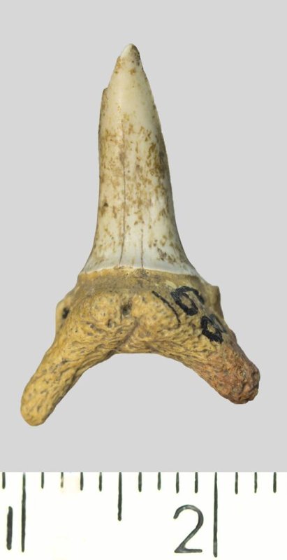 Зуб. Акула. Palaeohypotodus rutoti (Winkler, 1874). Классификация: Хордовые Chordata, Позвоночные Vertebrata, Хрящевые рыбы Chondrichthyes, Пластиножаберные Elasmobranchii