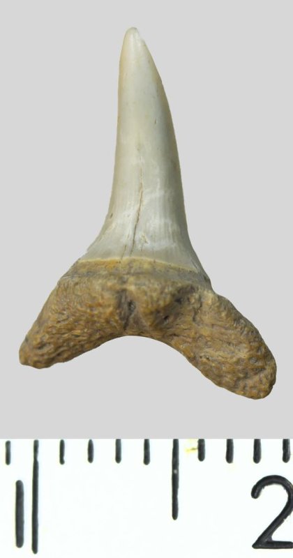 Зуб. Акула. Odontaspis whitei Arambourg, 1952. Классификация: Хордовые Chordata, Позвоночные Vertebrata, Хрящевые рыбы Chondrichthyes, Пластиножаберные Elasmobranchii