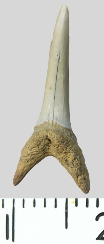 Зуб. Акула. Odontaspis whitei Arambourg, 1952. Классификация: Хордовые Chordata, Позвоночные Vertebrata, Хрящевые рыбы Chondrichthyes, Пластиножаберные Elasmobranchii