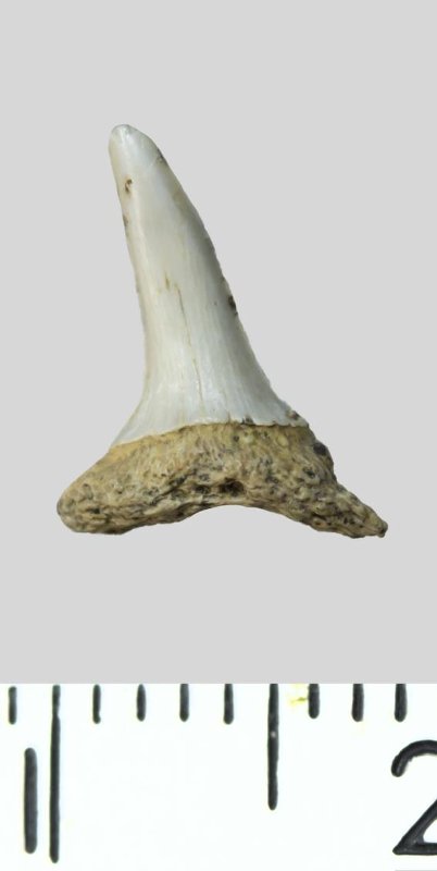 Зуб. Акула. Odontaspis whitei Arambourg, 1952. Классификация: Хордовые Chordata, Позвоночные Vertebrata, Хрящевые рыбы Chondrichthyes, Пластиножаберные Elasmobranchii