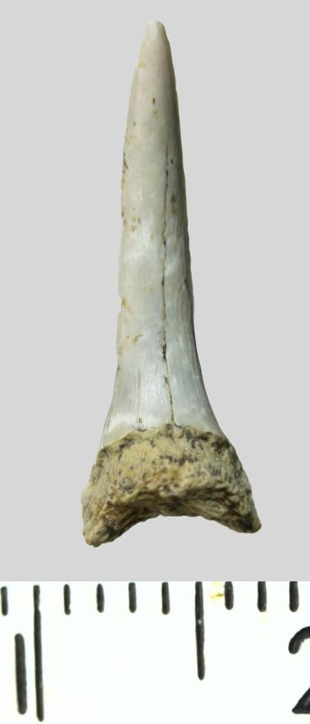 Зуб. Акула. Odontaspis whitei Arambourg, 1952. Классификация: Хордовые Chordata, Позвоночные Vertebrata, Хрящевые рыбы Chondrichthyes, Пластиножаберные Elasmobranchii