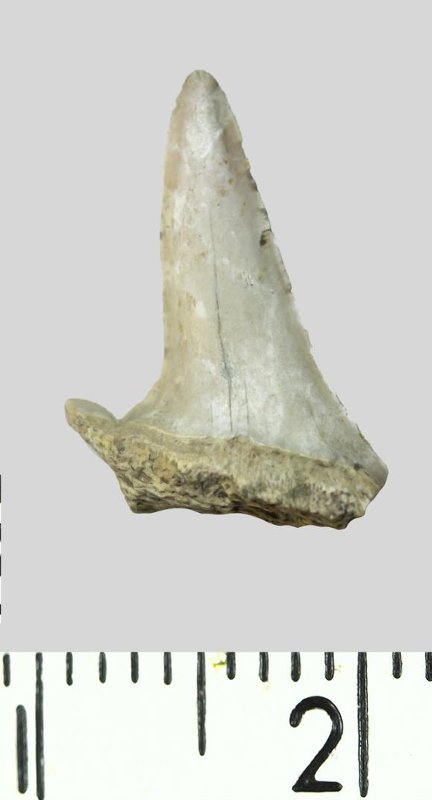 Зуб. Акула. Striatolamia striata (Winkler, 1874). Классификация: Хордовые Chordata, Позвоночные Vertebrata, Хрящевые рыбы Chondrichthyes, Пластиножаберные Elasmobranchii