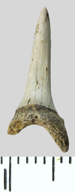 Зуб. Акула. Odontaspis whitei Arambourg, 1952. Классификация: Хордовые Chordata, Позвоночные Vertebrata, Хрящевые рыбы Chondrichthyes, Пластиножаберные Elasmobranchii